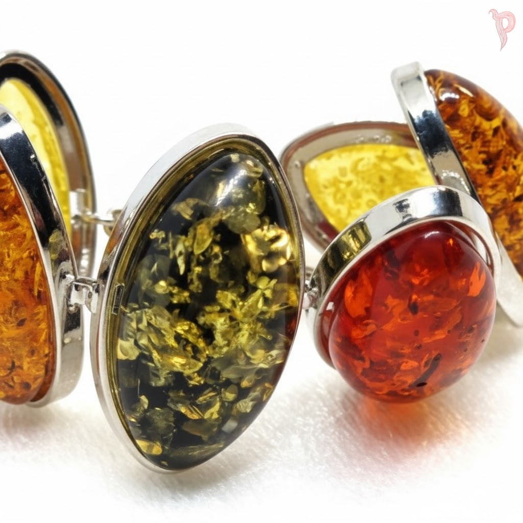 Särav merevaiguline käevõru pakub naturaalse merevaigu klassikalist välimust ja sooja sära taskukohasema hinnaga. Käevõru on valmistatud spetsiaalselt töödeldud sünteetilisest vaigust, mis imiteerib täiuslikult ehtsa merevaigu tekstuuri, värvi ja läbipaistvust, kandes endas ajatut ilu. Sünteetiline materjal on tihti vastupidavam ja kriimustuskindlam kui naturaalne merevaik.