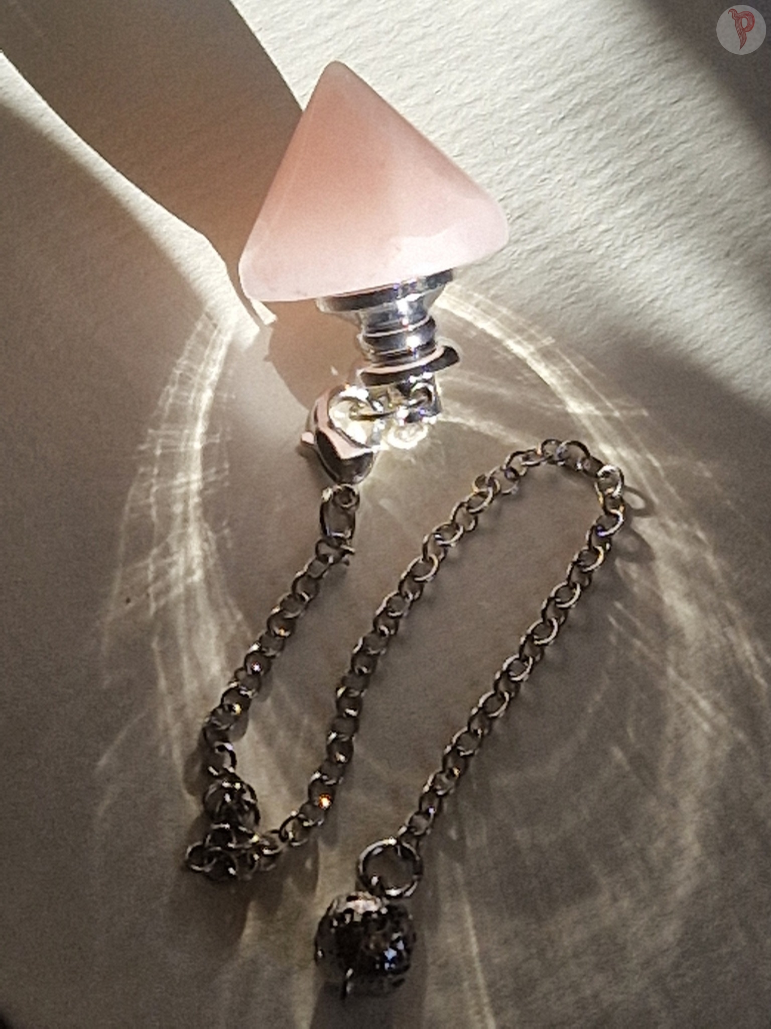 Roosakvartsist koonuspendel aitab teid otsingutel, mis puudutavad tundeid.  Pendel on väga tundlik ka lapsi ja nooruleid hõlmavates uuringutes, aidates välja selgitada nende psühholoogilisi ja emotsionaalseid probleeme. Tegemist on iselaaduva pendliga. Pendel töötab nii vastuvõtjana kui ka saatjana.