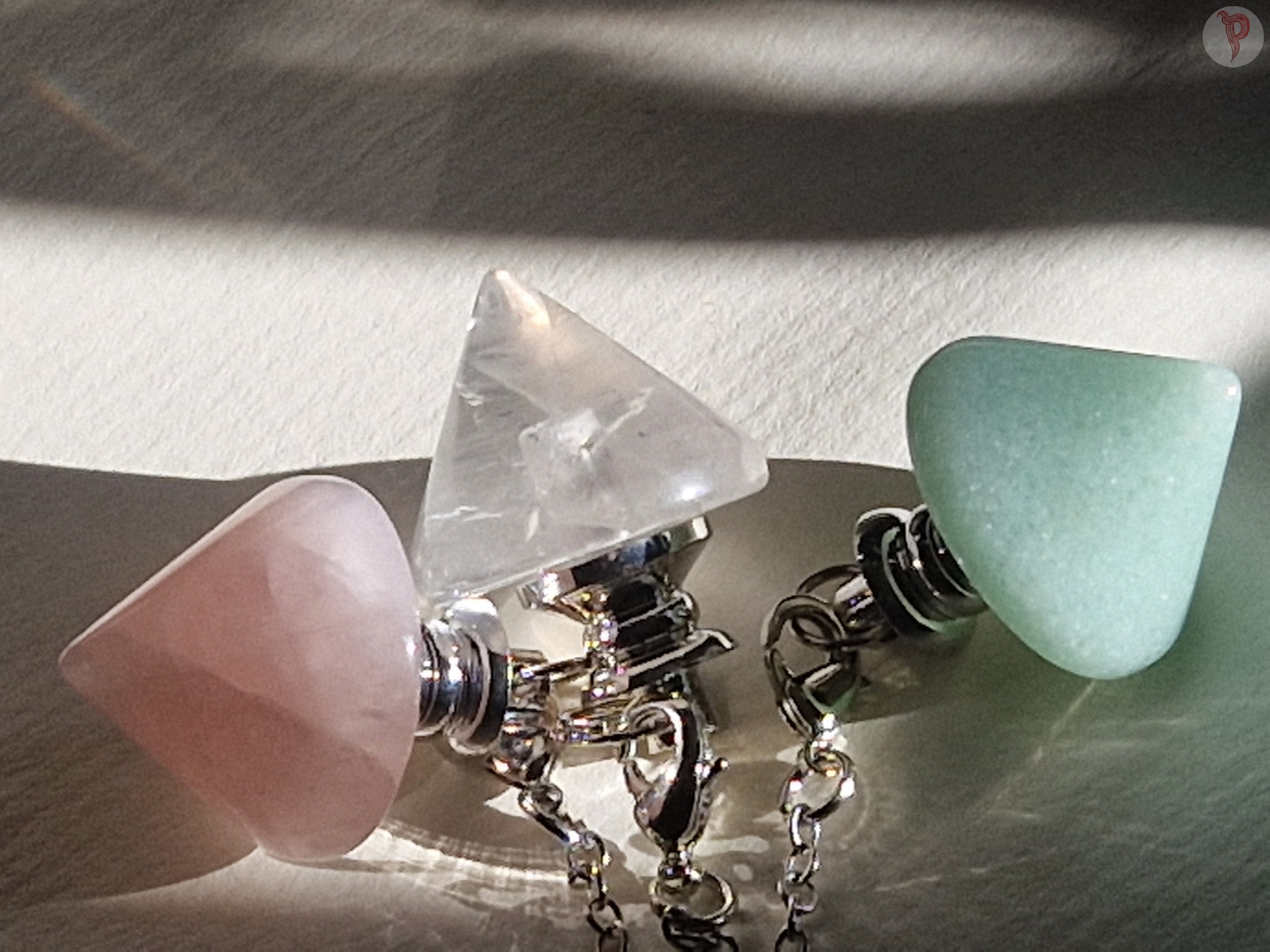 KOONILISED KIVIPENDLID EHK RAVITSEJAPENDLID. Selle üldistava nimetuse alla kuulub tegelikult viis (mäekristall, roosakvarts, valge ahhaat, ametüst, aventuriin) looduslikest kividest valmistatud koonilist pendlit, mille kasutajaks on enamasti inimkeha ja energeetilise meditsiiniga tegelevad radiestesistid: kas siis selleks, et uurida välja nõrgad organid või selleks, et viia seitsme energeetilise keskuse abil organismi funktsioneerimine uuesti tasakaalu. Viimane aspekt tuleb kõne alla nende pendlite puhul, mis on oma materjali poolest saatjad.