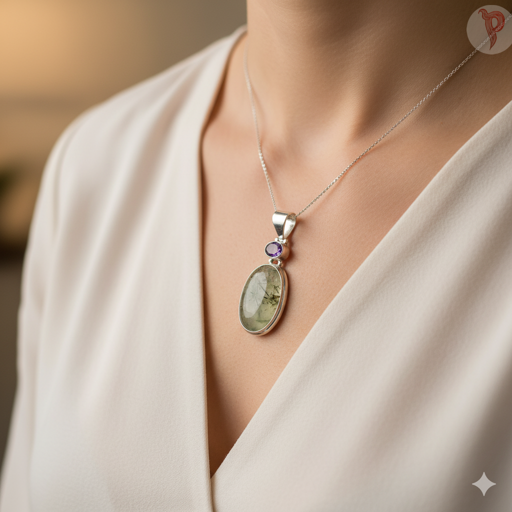 Avasta preniidi ja ametüsti võimas sünergia, mis on ühendatud ühes ainulaadses ripatsis. See kristallide kooslus loob harmoonilise tasakaalu, toetades sinu vaimset arengut, intuitsiooni ja sisemist rahu. See ripats on ideaalne kaaslane neile, kes soovivad süvendada oma vaimset teadlikkust ja saavutada emotsionaalset stabiilsust.
