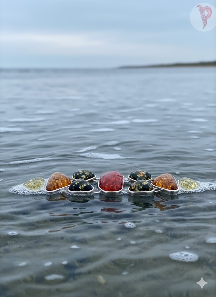 Särav merevaiguline käevõru pakub naturaalse merevaigu klassikalist välimust ja sooja sära taskukohasema hinnaga. Käevõru on valmistatud spetsiaalselt töödeldud sünteetilisest vaigust, mis imiteerib täiuslikult ehtsa merevaigu tekstuuri, värvi ja läbipaistvust, kandes endas ajatut ilu. Sünteetiline materjal on tihti vastupidavam ja kriimustuskindlam kui naturaalne merevaik.